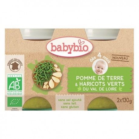 Babybio Petits Pots Pomme De Terre Haricots Verts Bio - Dès 4 Mois - 2 X. Ingrédients : Pommes de terre du val de Loire*...