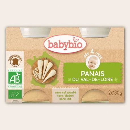 Panais. Ingrédients : Panais du val de Loire* 75% eau de cuisson. *Ingrédients issus de l'agriculture biologique. Quantité : 260 g (2 * 130 g)...