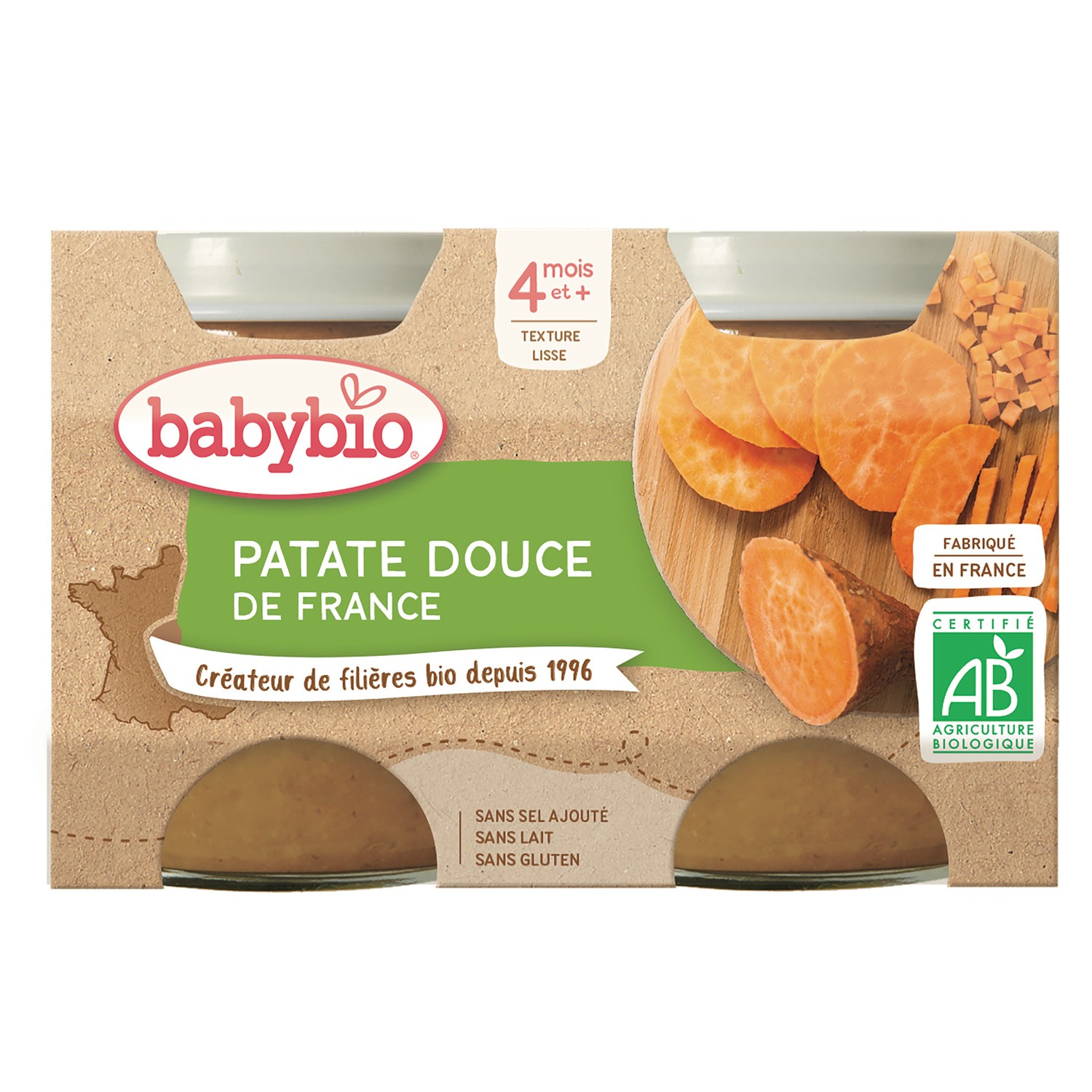Patate Douce. Ingrédients : Patates douces d'Espagne* 83%, eau de cuisson . *Ingrédients issus de agriculture biologique. Quantité : 260 g (2 * 130 g)...