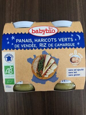 Pot Panais, Haricot Verts, Riz. Ingrédients : Panais de Hollande* 37%, haricots verts de Vendée* 30%, eau de cuisson, oignons d'Espagne* , riz* 4%, huiles...
