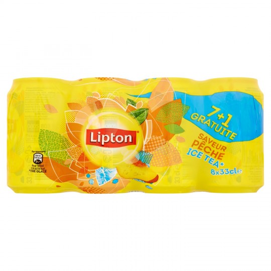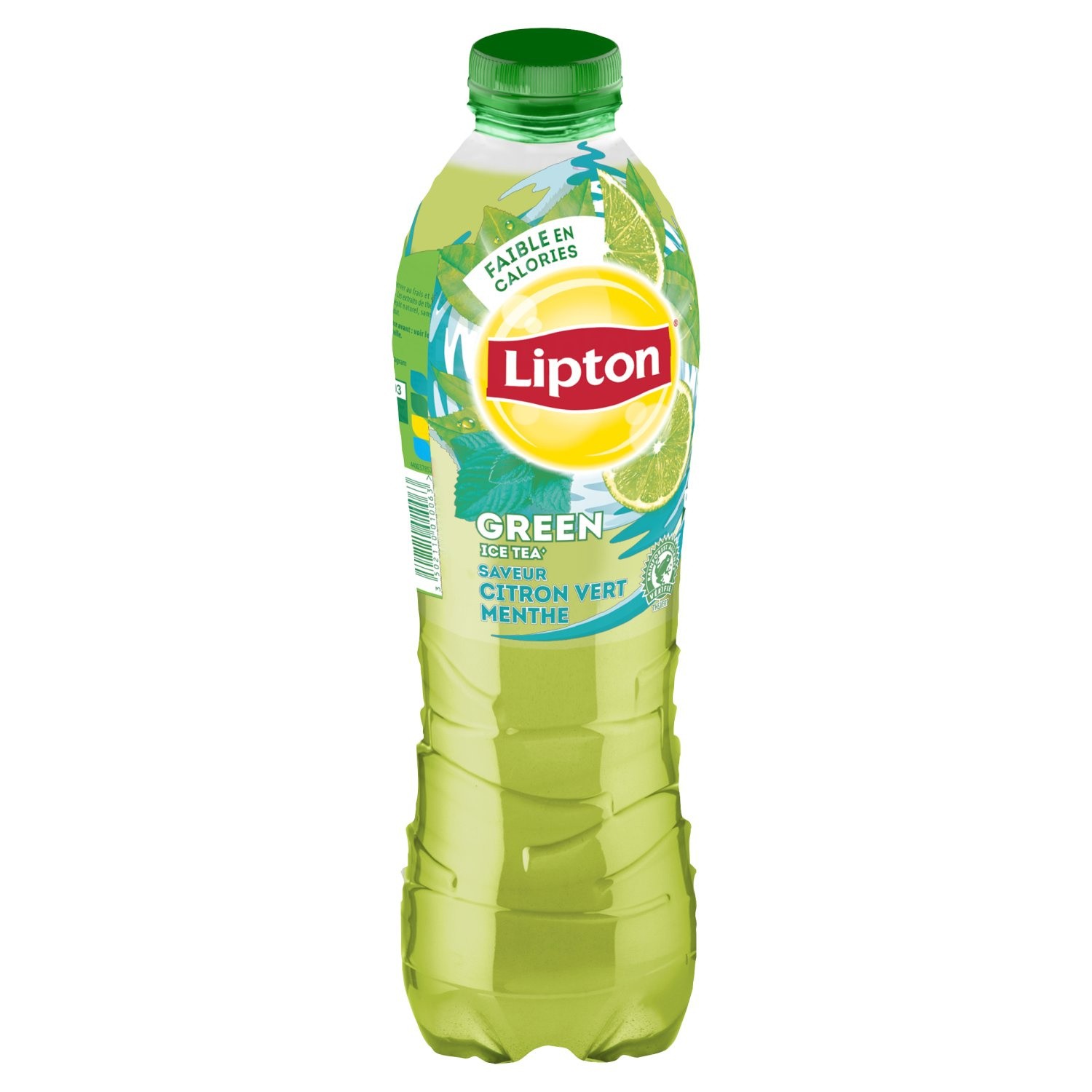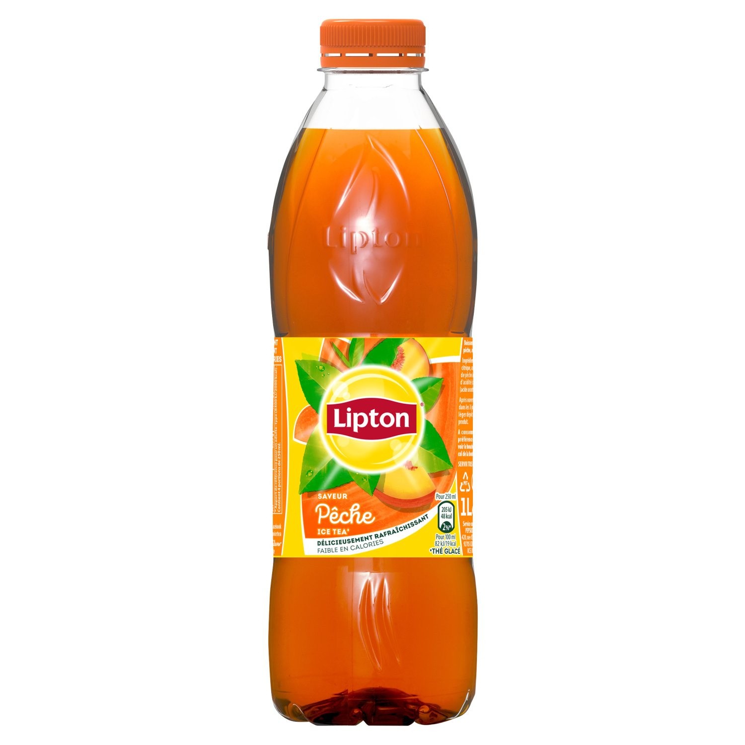 Lipton green peche blanche. Ingrédients : eau, sucre, extrait de thé vert (1,3g/l) jus de pêche à base de concentré (0,1%), arôme naturel de pêche...