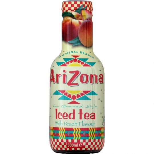 Ice tea. Ingrédients : Eau, sucre, acidifiant (acide citrique), extrait de thé noir (1,4g/L), jus de pêche à base de concentré (0.1%), arômes, antioxidant (acide...