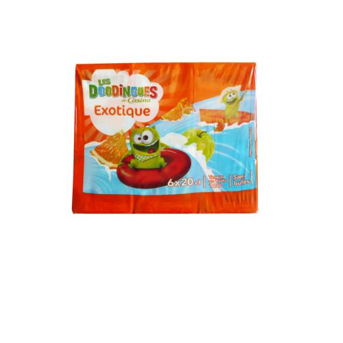 Boisson aux jus de fruits à base de concentrés arômatisée exotique. Ingrédients : Eau 79% - jus de fruit à base de concentrés 12% (orange...