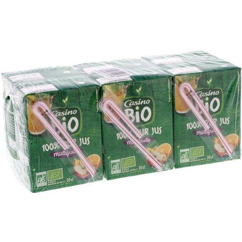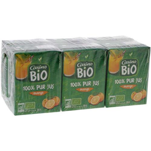 Jus d'orange issu de l'agriculture biologique. Ingrédients : Jus d'orange*. *issu de l'agriculture biologique. Quantité : 6 x 20 cl Marque : Casino