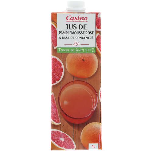 Jus de pamplemousse rose à base de concentré. Ingrédients : Jus de pamplemousse rose à base de concentré. Quantité : 1 l Marque : Casino...