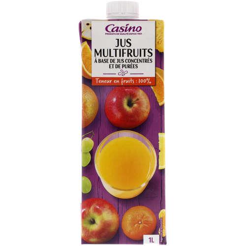 Jus multifruits à base de jus de fruits concentrés et de purées de fruits. Ingrédients : Jus de pomme à base de concentré 35.5% -...