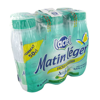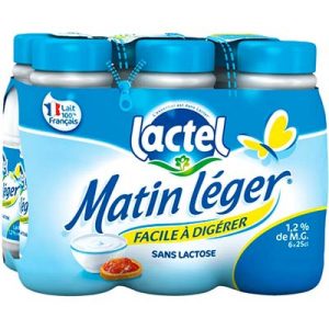 Matin léger - lait 1/2 écrémé facile à digérer. Marque : Lactel