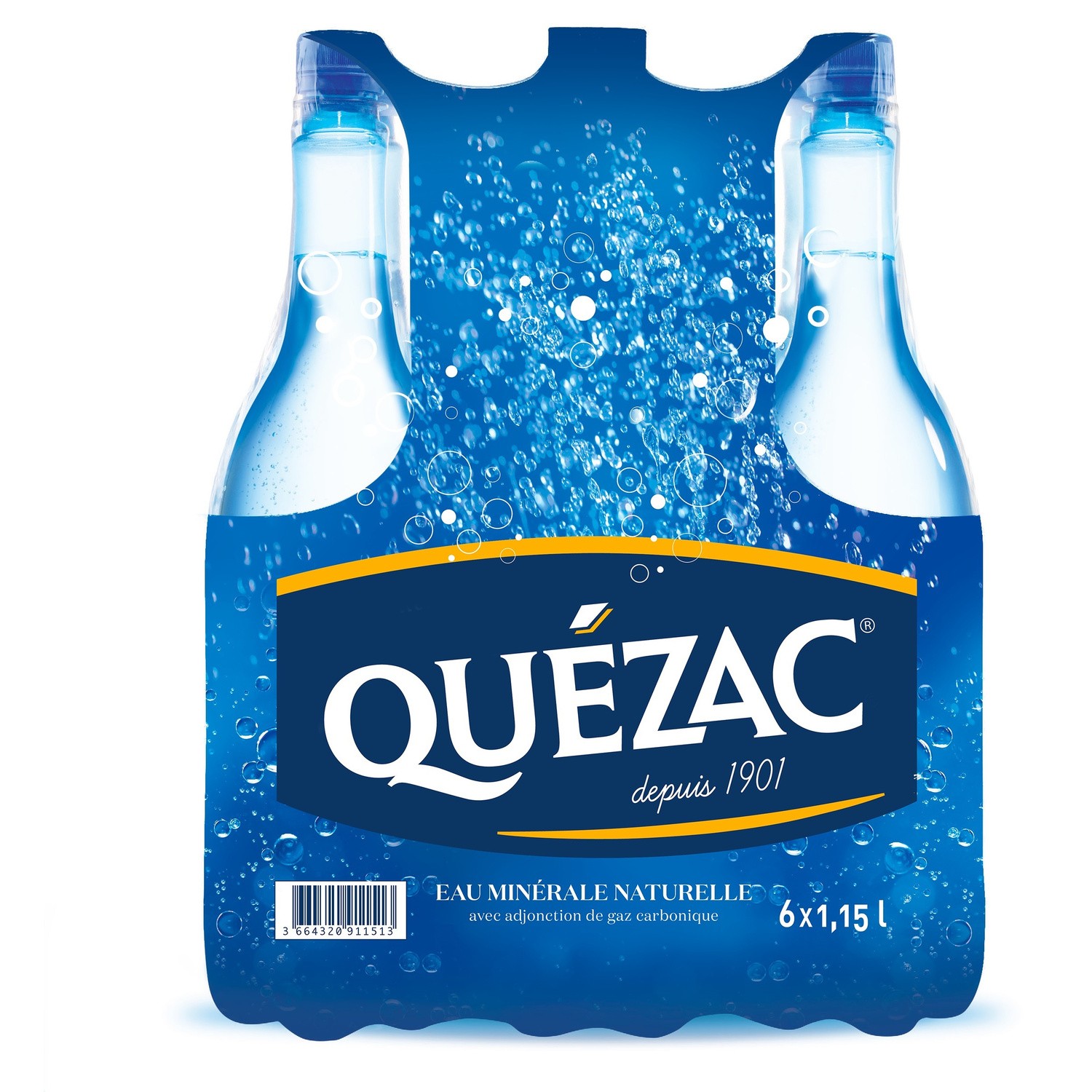 Eau minérale naturelle gazeuse avec adjonction de gaz carbonique. Ingrédients : Des terres sSauvages du Gévaudan est née QUÉZAC, une eau de caractère au goût...