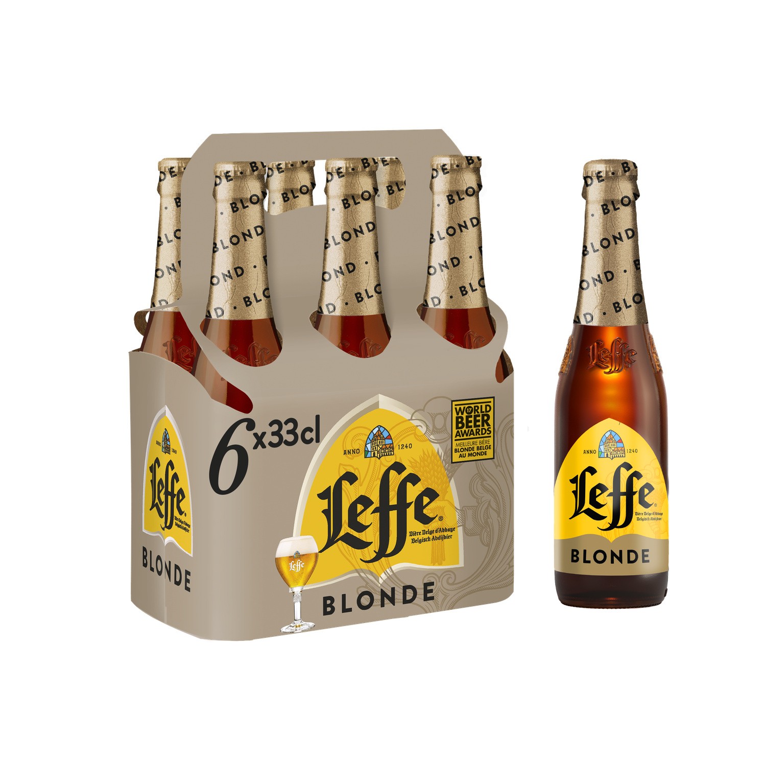 LEFFE Bière blonde d'abbaye belge le pack de 6 bouteilles de 33cL