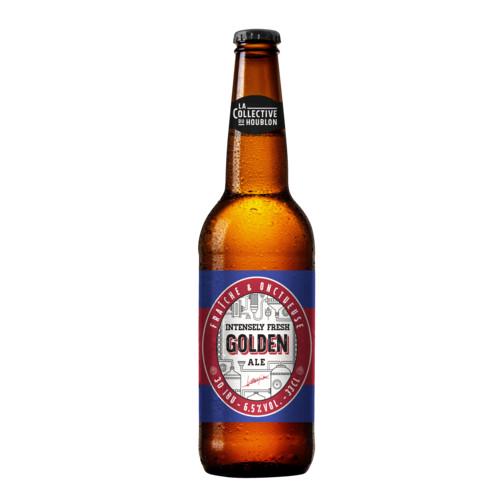 Bière blonde. Ingrédients : eau, malt d'_orge_, malt de _blé_, sucre, houblons. Quantité : 33 cl Marque : La Collective du Houblon