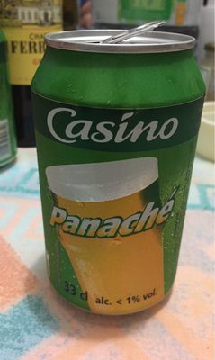 Panaché. Ingrédients : Limonade 71% ( eau gazéifié - sucre - acidifiant - acide citrique - anti-oxydant: acide ascorbique - arôme), bière 29%(eau-Malt d'orge -...