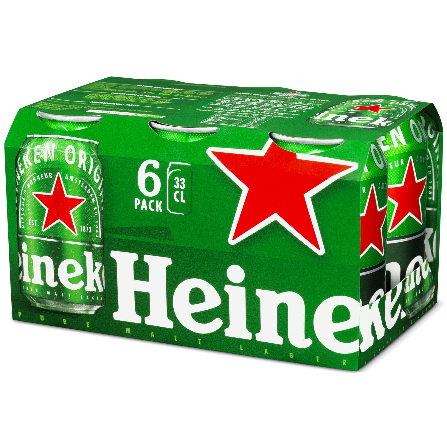 HEINEKEN Bière blonde le pack de 6 canettes de 33cL