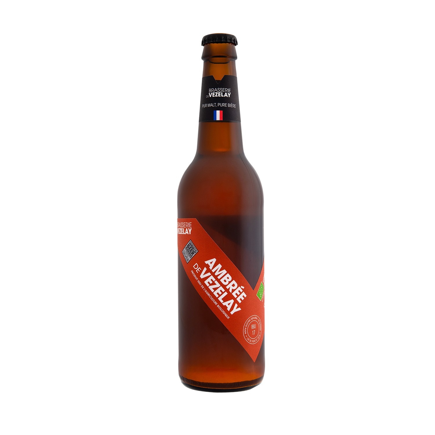 Ambré Bio de Vezelay. Ingrédients : eau, malts d'orges et de blé, houblon, levure sans OGM Quantité : 500 ml Marque : Brasserie de Vezelay...