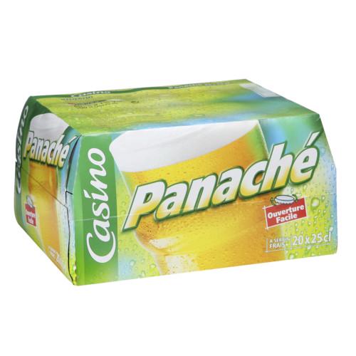 Panaché. Ingrédients : Limonade 71% (eau gazéifiée, sucre, acidifiant : acide citrique, antioxygène : acide ascorbique, arôme) Bière 29% (eau, malt d'_orge_, maïs, extraits de...