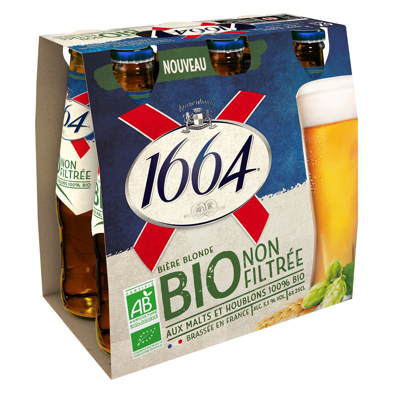 1664 Bière blonde bio non filtrée KRONENBOURG le pack de 6 bouteille de 25cL