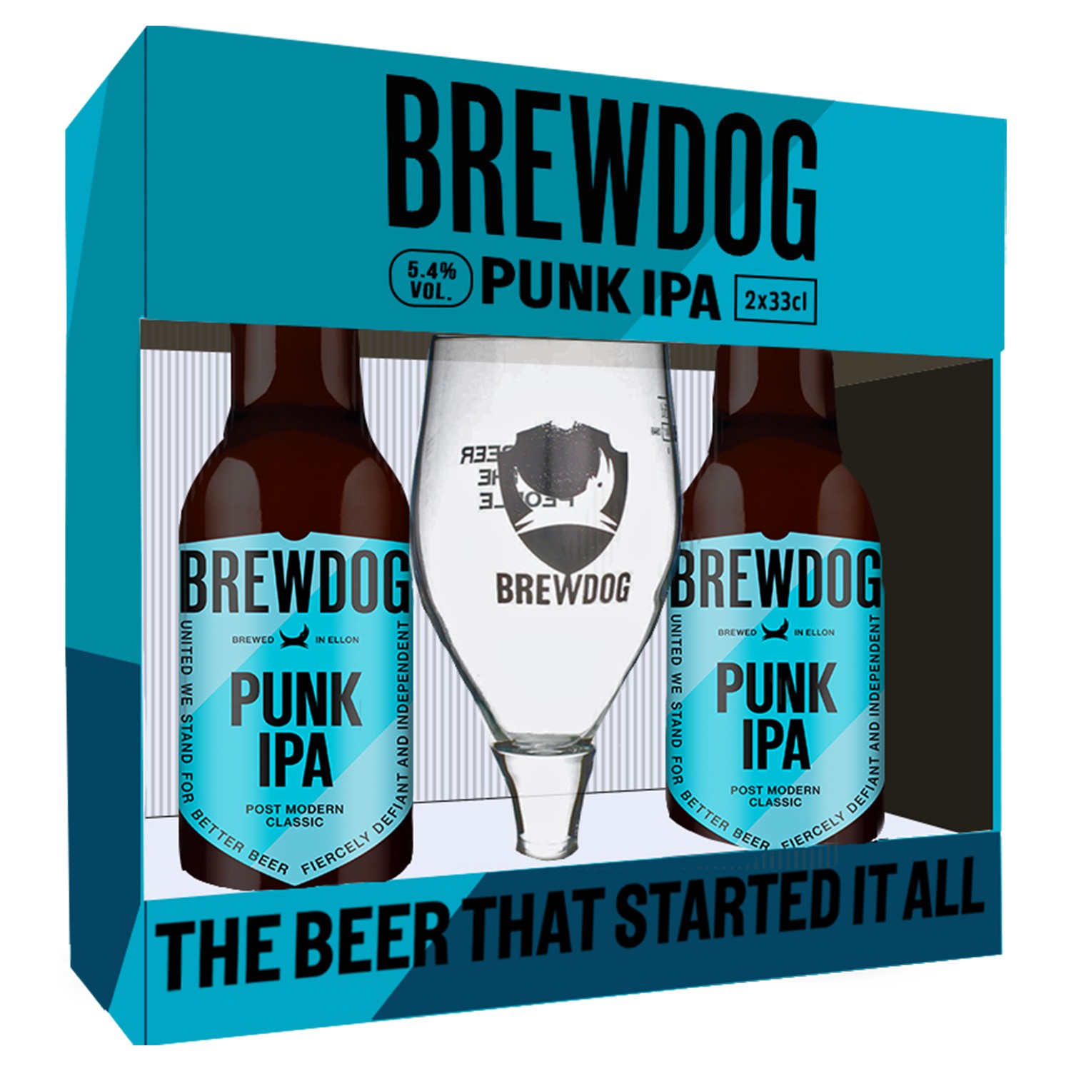 Coffret de bières Punk India Pale Ale. Ingrédients : eau, malt d'orge, houblon, levure Quantité : 66 cl Marque : Brewdog