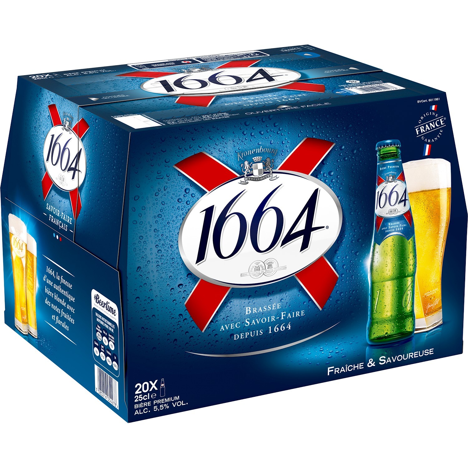 1664 Bière blonde premium le pack de 20 bouteilles de 25cL